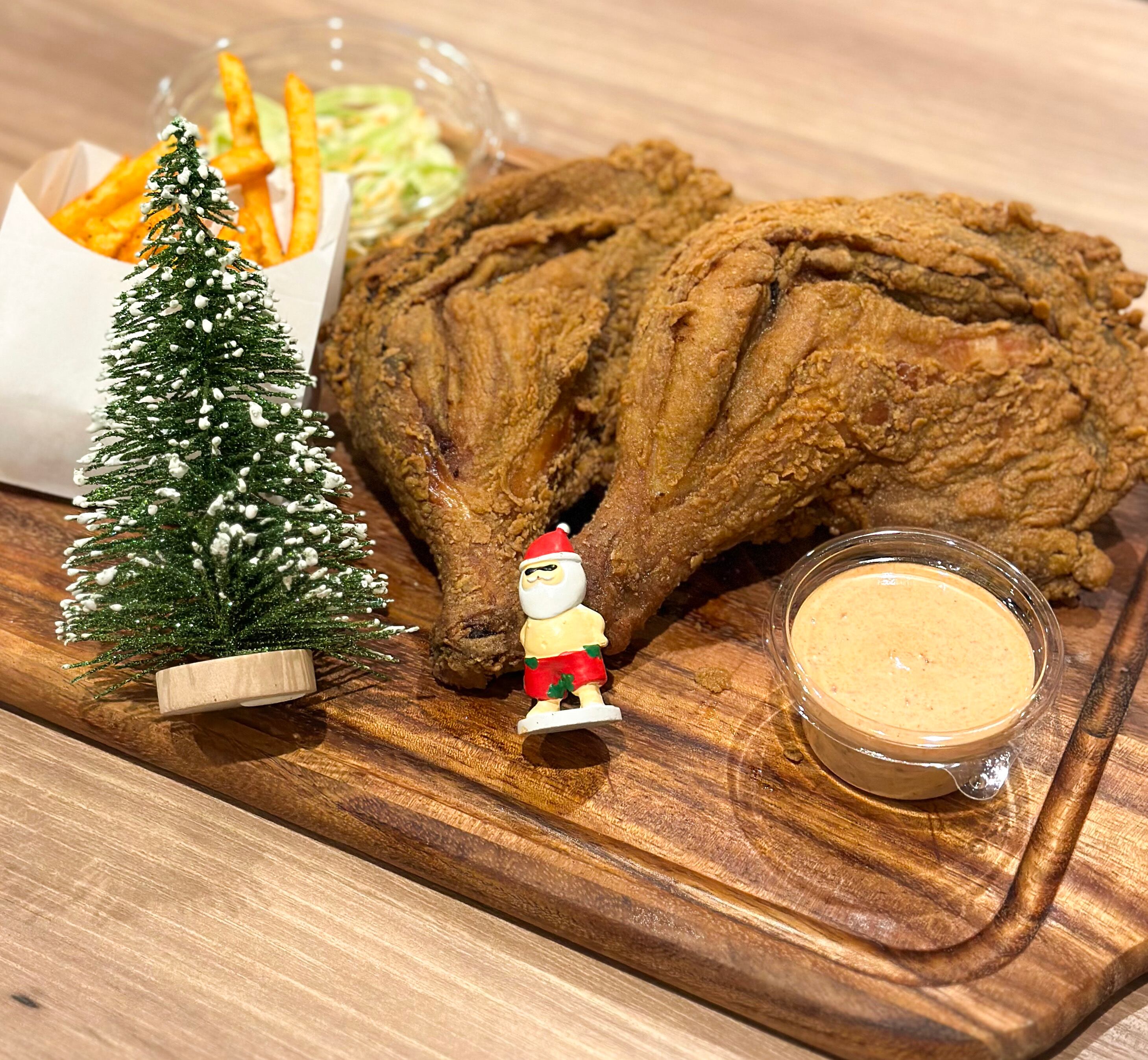オリジナルのたれに漬け込んだフライドチキンを豪快に頬張りましょう!